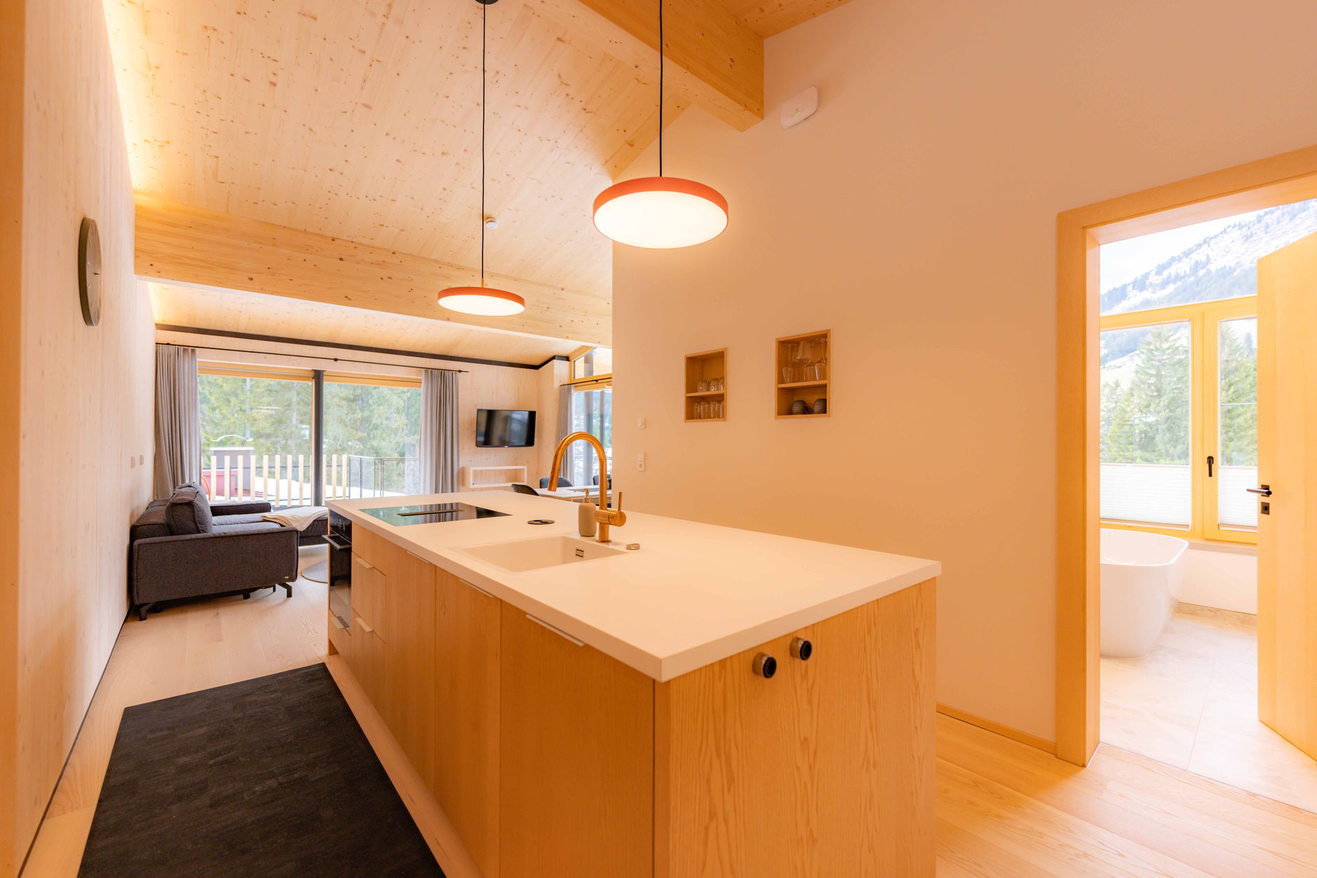Der Hochsitz - versteckt zwischen Bergen und Wäldern, fernab von Trubel. Es ist eine unserer exklusivsten Ferienwohnungen und ist für alle geeignet, die Ruhe, Natur und Komfort lieben. Zwei Schlafzimmer, ein offener Wohnraum mit moderner Ausstattung aus heimischen Hölzern und klaren Linien schaffen Raum zum Ankommen und Wohlfühlen. Der große Südwestbalkon schenkt ganztägig Sonne, sowie herrliche Ausblicke in die Bergwelt. Ein besonderes Highlight ist das Badezimmer - euer "private Spa" Dieser besteht aus einer eigenen Sauna mit Blick in die Berge - hier verschwinden Stress und Alltag wie von selbst. In der freistehenden Badewanne kann man mit dem Blick ins Grüne seine Gedanken schweifen lassen.